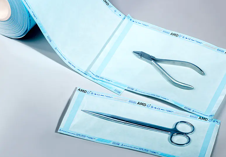 Bahan: Bahan biasa termasuk kertas kraft gred perubatan, Tyvek®, dan laminates filem plastik.